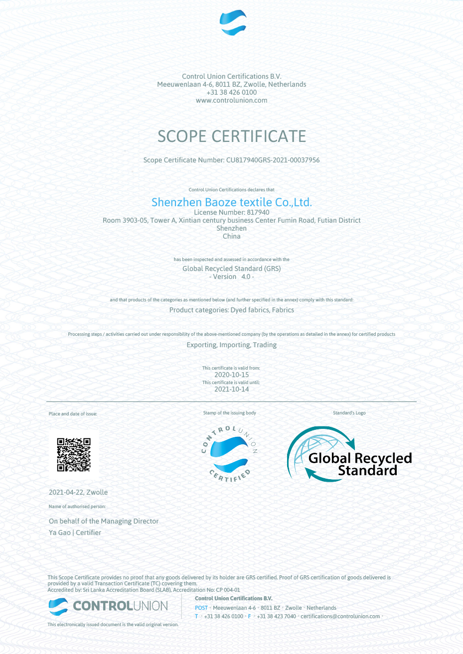 die gesamte Industriekette, GOTS, OCS, GRS, RCS, Oeko-Tex 100, gewährleisten Sie die ökologische Umwelt