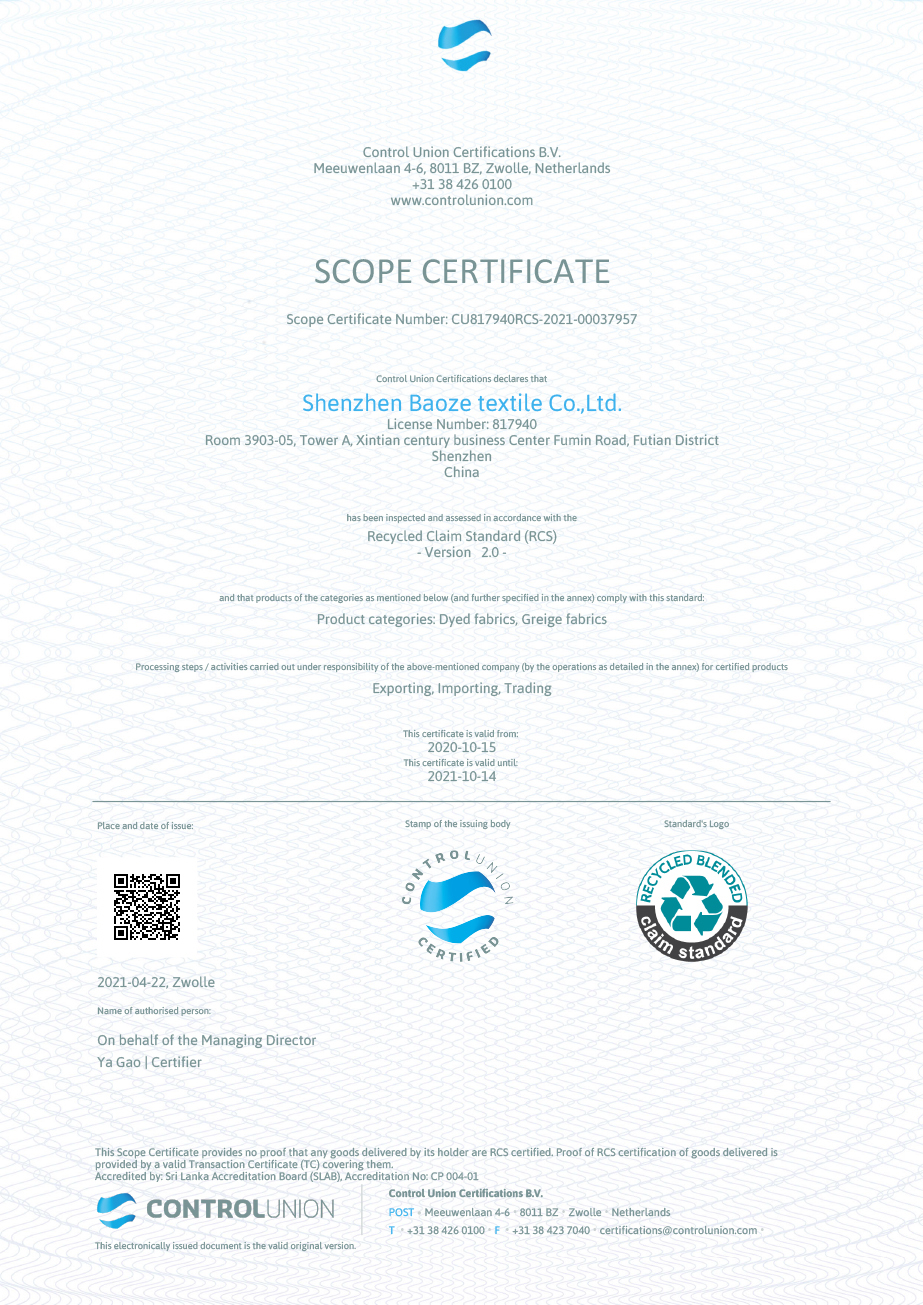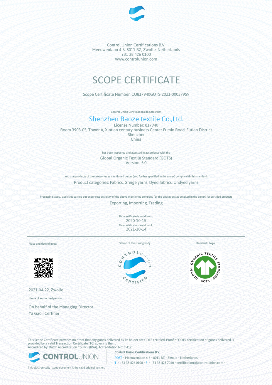 die gesamte Industriekette, GOTS, OCS, GRS, RCS, Oeko-Tex 100, gewährleisten Sie die ökologische Umwelt